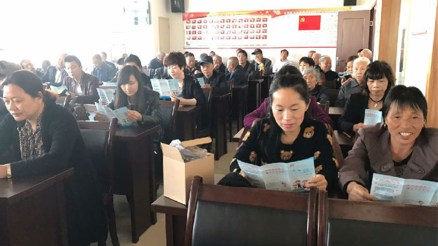 张老桥村召开党员、村民代表会议,布置平安家庭创建工作,并组织与会人员学习《反家暴法》等平安家庭知识。