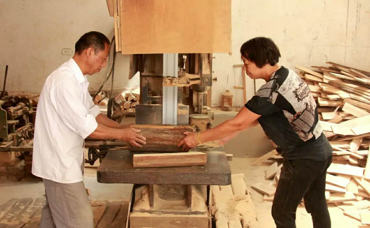 妻子姚素娟是徒弟也是工友。1996年,看着丈夫日夜忙碌,此时孩子还小,爱惜丈夫身体的姚素娟,咬牙把孩子交给公公、婆婆,帮着丈夫做一些锯板、钻洞、套圈等粗活,而刨斜边、打磨出细等手艺活,还是由丈夫负责打理。