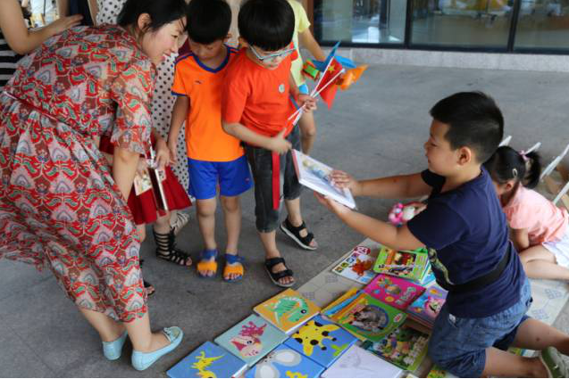 我们的小卖家们早早就前来报到啦!他们认真地签上自己的大名,并领取专属的营业执照和摊位号!