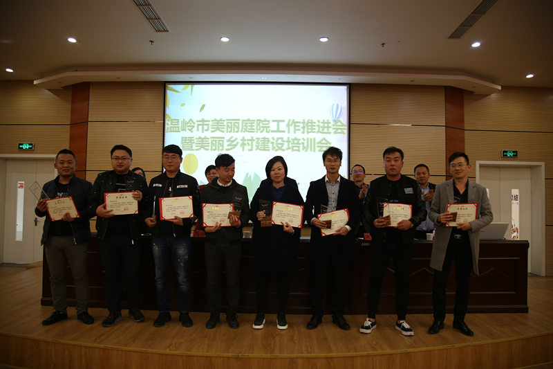 会议表彰了温岭市首届“美丽庭院”创意建设大赛的获奖者和温岭市首届庭院美化大师。据悉温岭市首届“美丽庭院”创意建设大赛是市农办、市妇联联合在温峤镇峨嵋山村举办,历时两个月,投入50多万元,希望通过比赛实现既培育挖掘一批专业设计团队,又打造一批庭院样板的目的。各镇(街道)党委(党工委)及其专业团队参赛,经过设计、审核、施工建设,峨嵋山村庭院及乡村面貌焕然一新,该比赛的网络投票浏览量达199577次,39876人参与投票。最后,通过专家评审和群众网络投票,泽国镇党委组织打造的4号庭院获得一等奖。表彰会后,吴玉明主任结合温岭当前美丽乡村工作为在座的参会人员做了一堂题目为《美丽乡村建设与乡村振兴》的培训,强调了美丽乡村工作要坚持以人为本,设计建设要符合当地实际,既要避免一味追求“高、大、上”,又不能将美丽乡村简单理解为画墙画,他还重申了乡村建设要严把审核关,未经审核的项目坚决不能上,要从党的十九大乡村振兴计划的高度来理解和建设美丽乡村。
