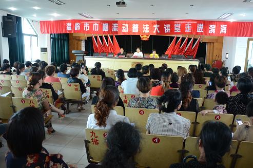 7月7日,在滨海镇五楼会议室,来自全镇的400多位妇女干部、村妇代会成员及女村民代表,正在聚精会神地听普法讲座。当天,由市妇联组织的巾帼流动普法大讲堂走进滨海,市人大常委会法工委林晨主任专门就农村日常工作中碰到的有关法律问题进行了专题讲座。市妇联副主席张俊雅参加讲座。