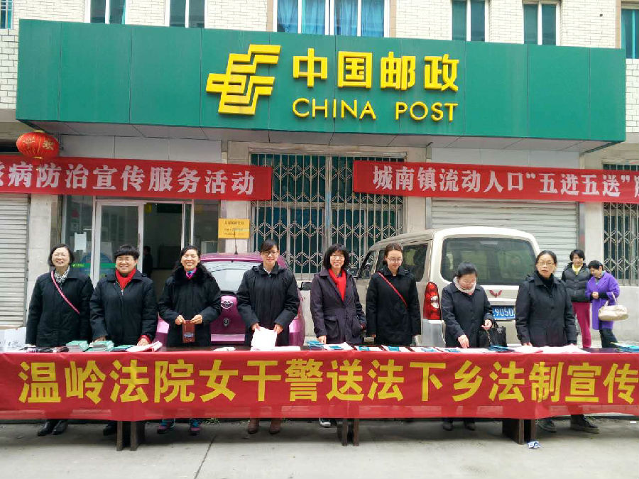 为进一步普及法律知识,增强法制意识,3月16日,来自温岭法院的十多名女干警在城南大闾街开展“送法下乡”法制宣传活动,向群众宣传法治理念、讲解法律知识,提供法律援助。