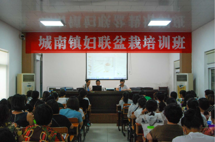 为丰富广大妇女的精神生活,倡导绿色种植,美化家庭坏境,6月14日,城南镇妇联联合市职技校举办的盆栽植物知识培训班正式开课,来自镇域内的六十多名妇女参加了培训。