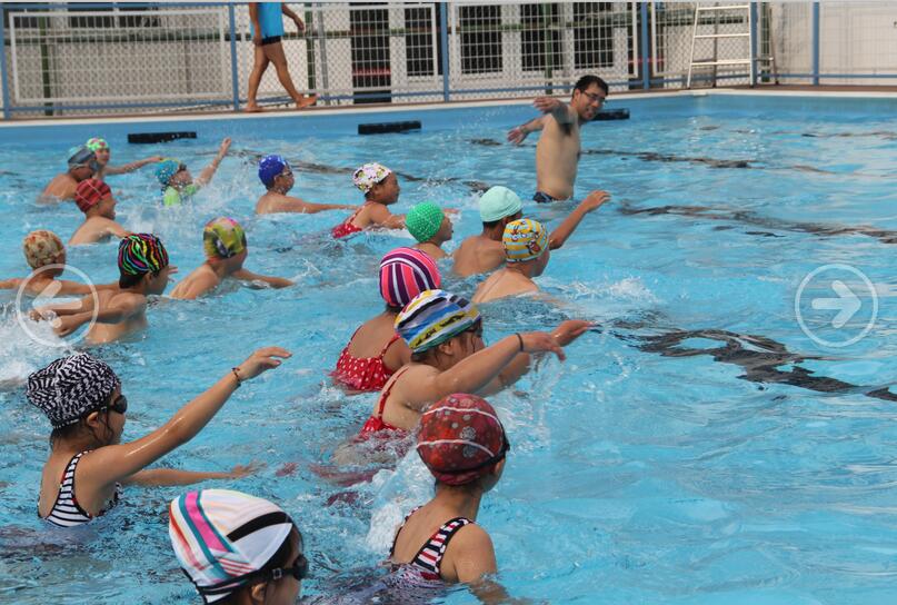 讲座结束后,张教练鼓励孩子们下水,在游泳池里手把手教孩子们正确的游泳技巧,深受社会各界好评。